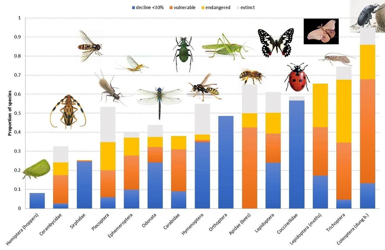 Researchers from University of Sydney reviewed 73 studies across many European or American countries and found that many insect species are in decline across the world. Further, the study reported a 2.5% annual rate drop in biomass calculated across UK, Germany, Puerto Rico and Netherlands. At this rate, insects will disappear in a century. However, while most insects are declining in numbers a small proportion are increasing and will survive.